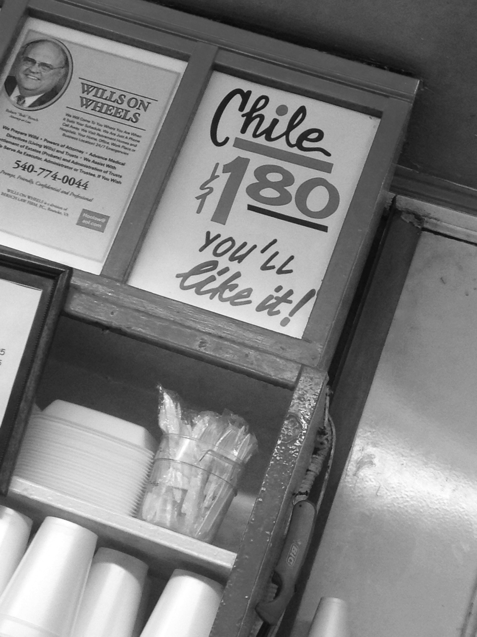 Somehow, out of the blue, my father must have sniffed the place out.  He has a nose for greasy spoons, and even though we were about to eat a fancy plated dinner in about thirty minutes, he made an announcement: